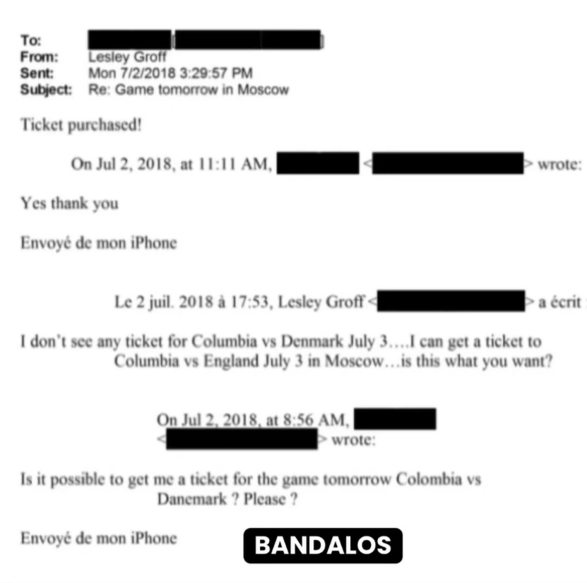 Un correo desclasificado de los Archivos #Epstein, identificado EFTA02250277 y fechado el 2 de julio de 2018, registra una gestión logística de último minuto en pleno Mundial de Rusia.